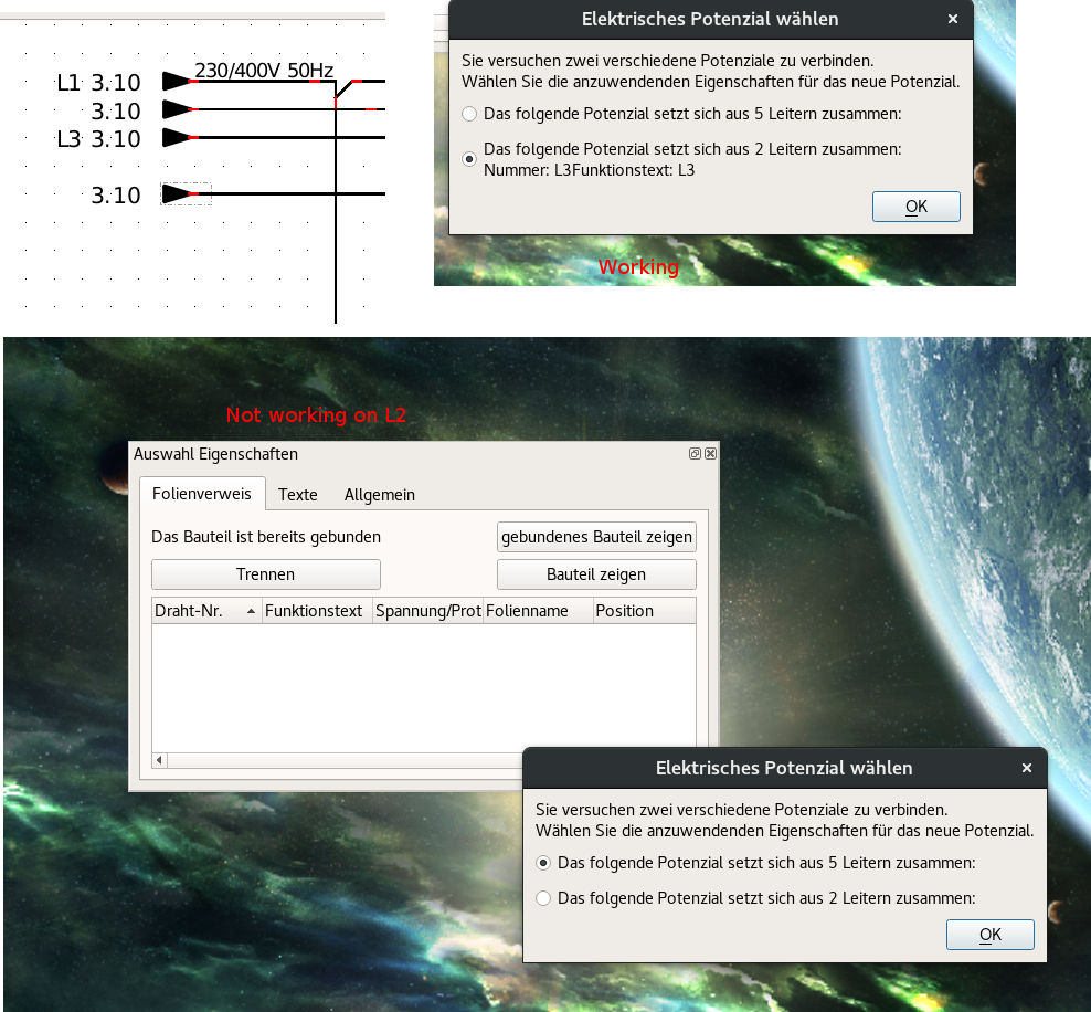 Yes we know if you use a connector with 3 or 4 terminal you need to add yourself conductor properties, name voltage/tension, etc. https://download.qelectrotech.org/qet/forum_img/bug_145.mp4 |