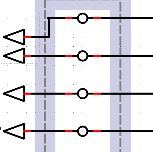 If I place the port too close, the highlight box is too large meaning that I cannot select the lower item. Solution is to spread out the ports as show in image. Means ports on double grid spacing, whereas single grid spacing looks nicer. Is there any reason why the selection box is so large? |