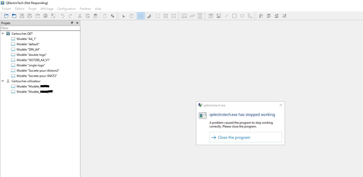 DescriptionSuite à un précédent crash de qElectrotec (je ne connais plus la raison exact), le logiciel me propose de restaurer les fichiers pour les récupérer. Je l'ai fait la première fois, sauf que les fichiers étaient en lecture seul. J'ai donc supprimé ce fichier puis pris une sauvegarde qui était dans un de mes SSD (que je fais manuellement).