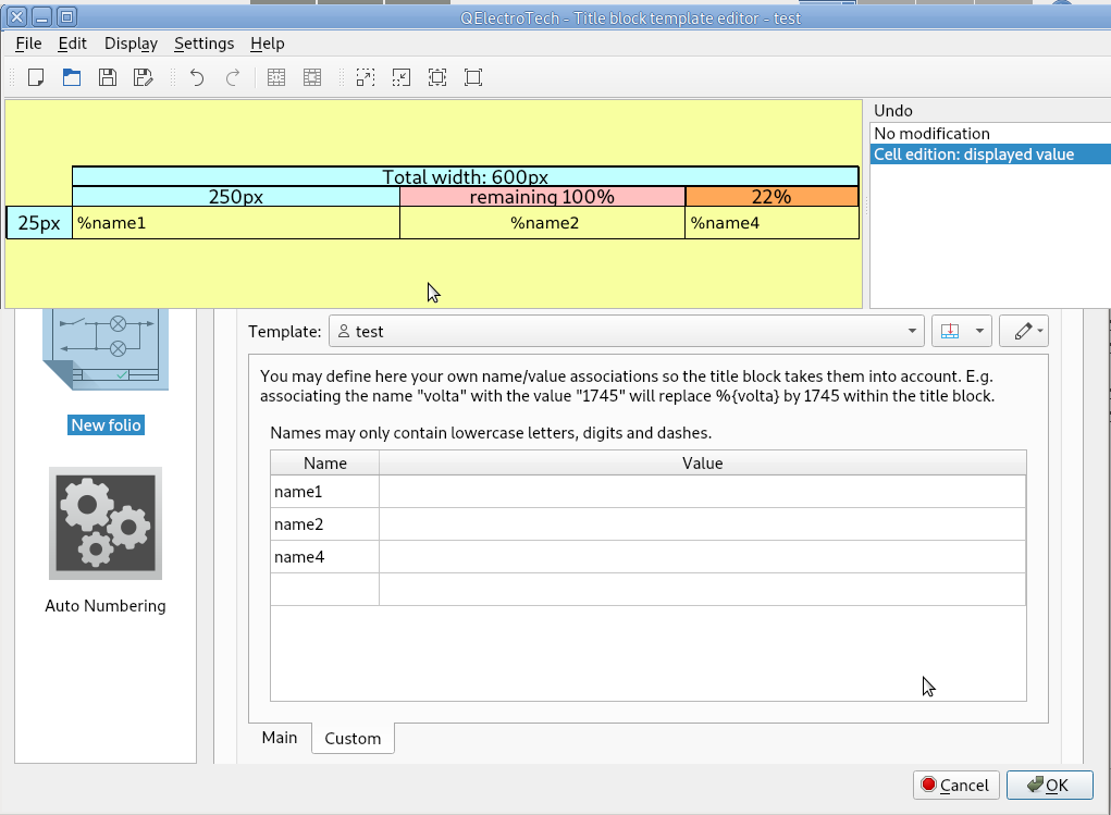 | Description | When I open title block template editor and define more custom variables in same cell. They are not automatically recognized in project properties. However when I manually add them, everything works as expected - they show in title block of selected folio.