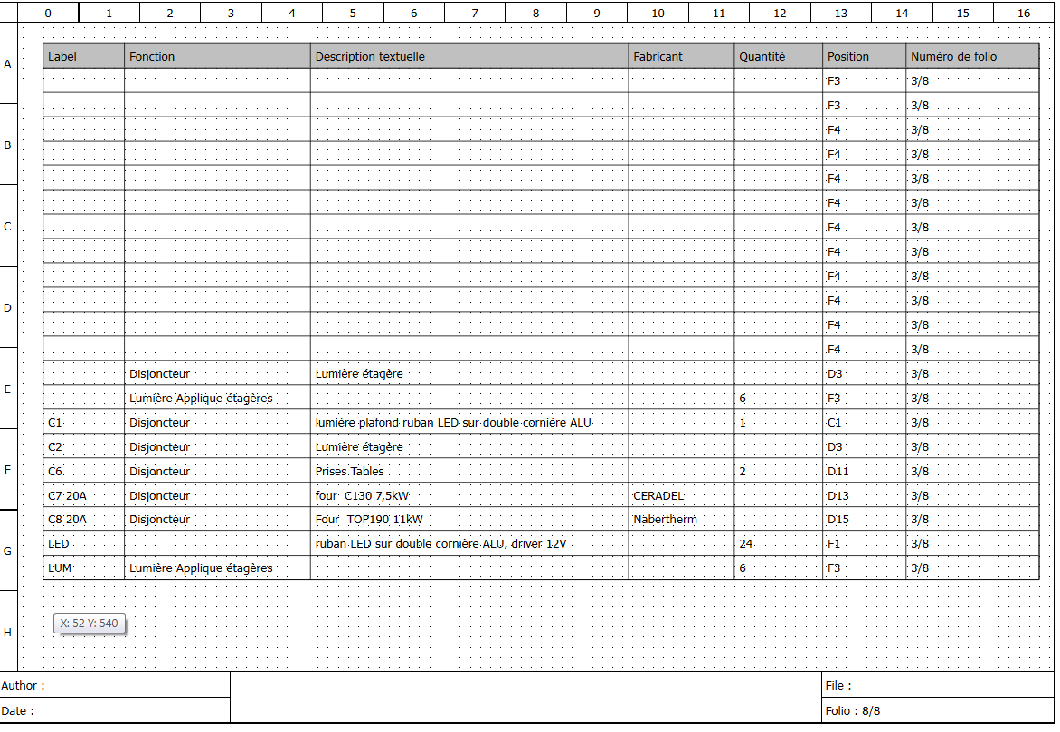 | Steps To Reproduce | created diagram with around 15 elts and many connections. Several linked nomenclature folio, added when msg " veuillez ajouter un nouveau tableau ou régler les tableaux existant...". modified the nomenclature "Contents" for the columns, and the types => uncheck "borniers" & "simples". | ||||
