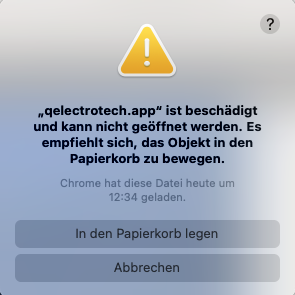 Same file but downloaded with google chrome -> « qelectrotech 2.app » est endommagé et ne peut pas être ouvert. Vous devriez placer cet élément dans la Corbeille. Chrome a téléchargé ce fichier aujourd’hui à 12:15. |