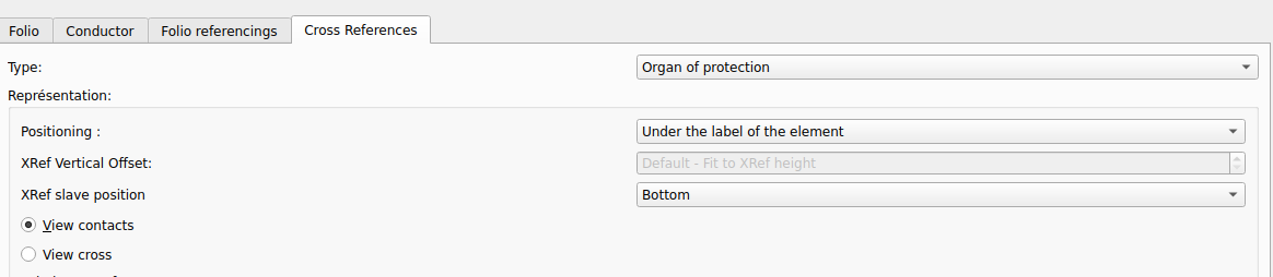 It escaped my attention that this error was already mentioned in the forum. The explanation in the forum post is a little bit foggy, but if you want to correct this error in your existing drawing, do the following: 1. Project/Project properties 2. New folio / Cross referencing tab 3. Select "Organ of protection" on upper first Type: listbox 4. Then click these settings: View contacts Under the label of the element Bottom (There was "Text alignment" setting, which does this strange overlapped Xreference) 5. Click OK Now Your existing drawing will be corrected. Check all occurrences and correct the label positions if needed. To avoid this issue in Your NEXT NEW project, do the same settings in the "Settings/Configure QElectrotech" I think this is clear for everyone who have this same problem. Thank You scorpio810 for help! :-) |