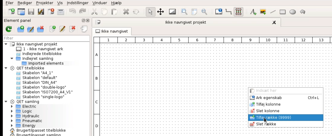 | Steps To Reproduce | This is done with reference to Danish translation on QElectroTech V0.51-dev+svn4400 on Windows but also goes for newer versions and also seen on Debian. Create a new diagram. Hold the mouse on the 'Tilføj række' (Ajouter une ligne/Add new row), it will popup with 'Tilføj række(#)' Then try right click on the folio.Second last menupoint says the same 'Tilføj række(#)' The topic at the top is about creating a new line the other one is creating a new row. Hope I have explained it well and as mentioned in the dtails it islow priority but then again I can't 'finish' my translation correctly like it is :-)
