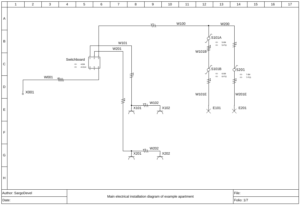 I had to use some tricks in QElectroTech diagram to achieve my goal (see apartment_example.qet below). Do you think it is practical to make such a diagram?