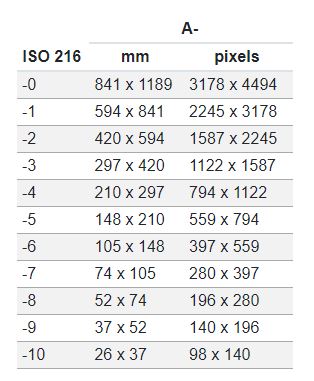 The pixels dimensions according ISO 216