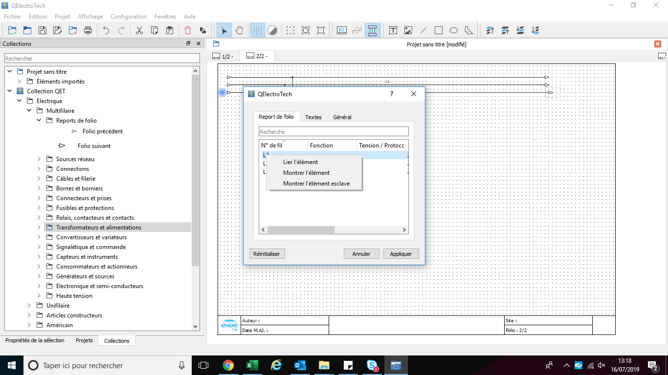 tu dois lier ton element (rapport de folio) à un numéro de fil.