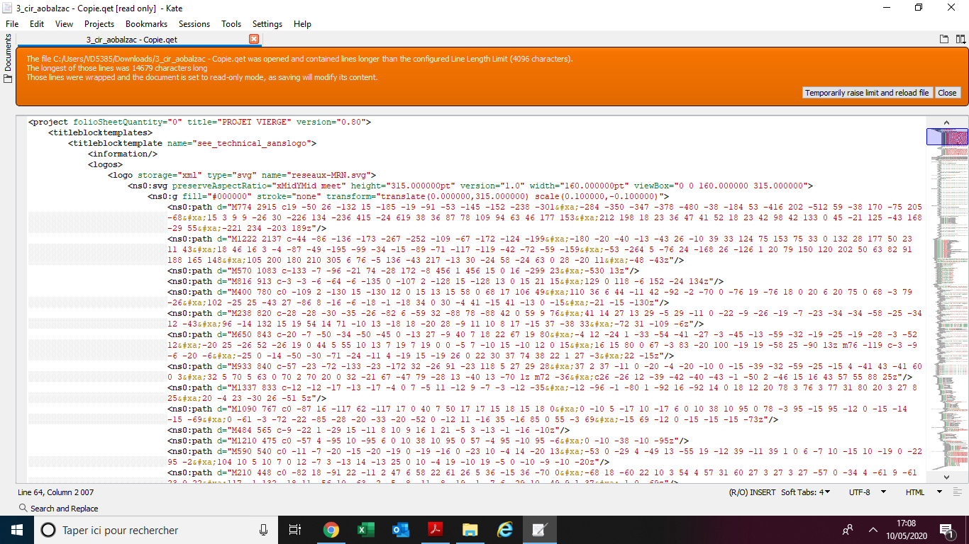 En ouvrant le projet avec l’éditeur de texte je vois des logos apparaître
