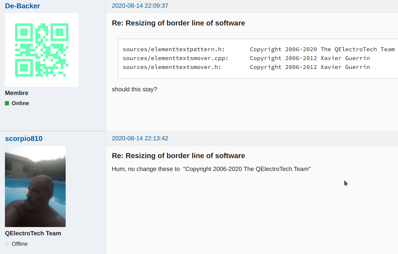 Hum, no change these to "Copyright 2006-2020 The QElectroTech Team"