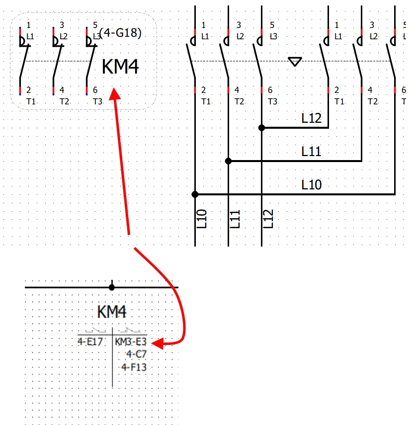 Il s'affiche KM3-E3 au lieu de 3-E3 (contacts dans folio3 et bobine dans folio 4), je ne comprend pas ça devrait être le numero de folio qui devrait s'afficher.