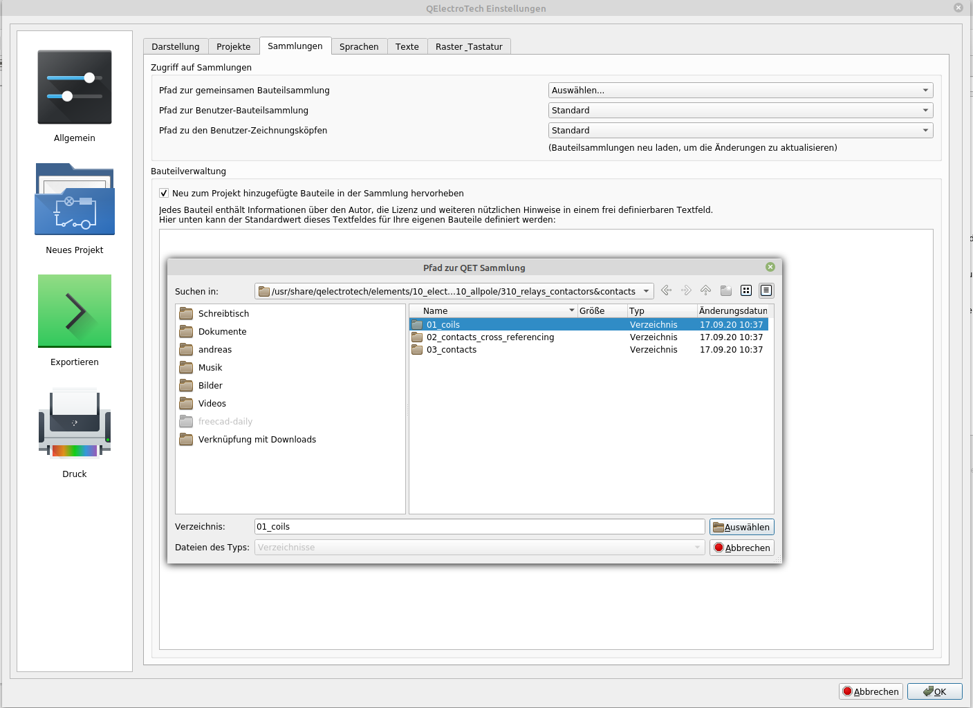 Einstellungen > Allgemein > Sammlungen > Pfad zur gemeinsamen Bauteilsammlung ?