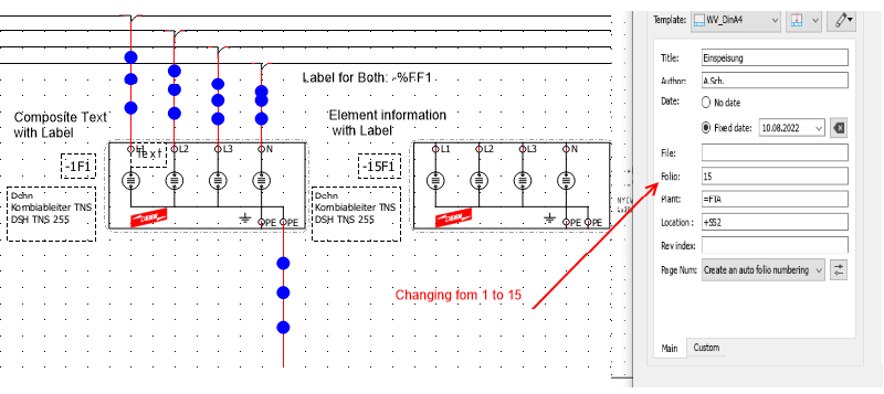 BTW, a workaround is to cut this element and paste again when you have changed folio label. Or save, close and re open project.