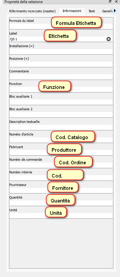 QelectroTech - Italian: "Information" element selection properties, are to be corrected, thank you.