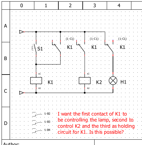 I am using QElectroTech for making a circuit diagram for a CNC milling machine. For that, I will use some relay logic. When I link several contacts to a coil, they appear to be ordered by the folio number and position. Is there a way I can change the ordering, or somehow make the contact number shown?