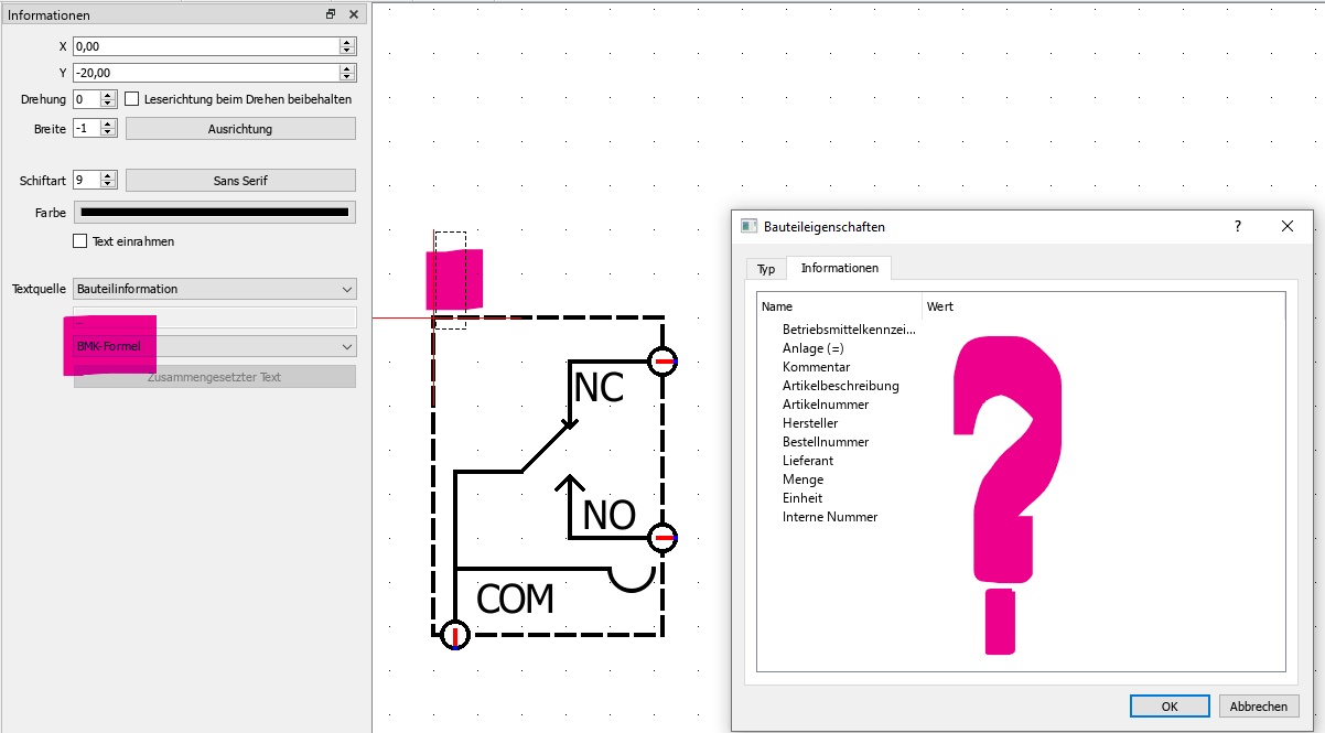 wenn man ein neues Bauteil erstellt, kann man Texte aus den Bauteilinformationen im Bauteil platzieren.