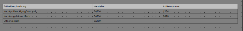 wenn ich ein Betriebsmittelverzeichnis einfüge, werden fein säuberlich alle hinzugefügten Bauteile aufgelistet. Das funktioniert, abgesehen von ein paar Leerzeilen wunderbar.