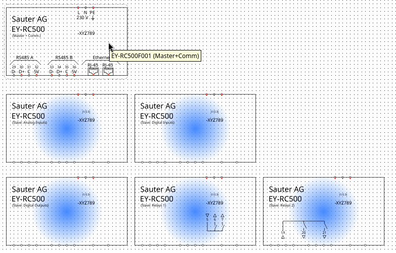 The manufacturer, designation and label for the slaves are dynamic texts that are filled from master-info, when connected.