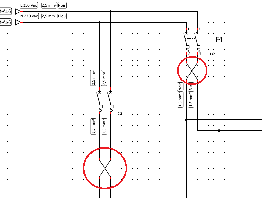 Auriez-vous une idée d'élément permettant d'éviter ce problème ? Je voulais respecter le câblage réel de ma platine sur le schéma. S'il n'y a pas de solution, j'inverserai les files en amont du disjoncteur sur mes schémas.