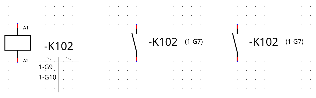 Wenn ich eine Spule mit Hilfskontakten verknüpfe, wird der Verweis korrekt plaziert (gemäss Einstellungen: oben/unten/links/rechts).