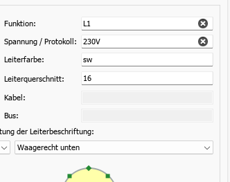 gibt es eine Möglichkeit, wenn ich bei einem Leiter die Eigenschaften eintrage wie Funktion, Spannung, Leiterfarbe oder Querschnitt diese im Plan anzuzeigen oder zu exportieren?