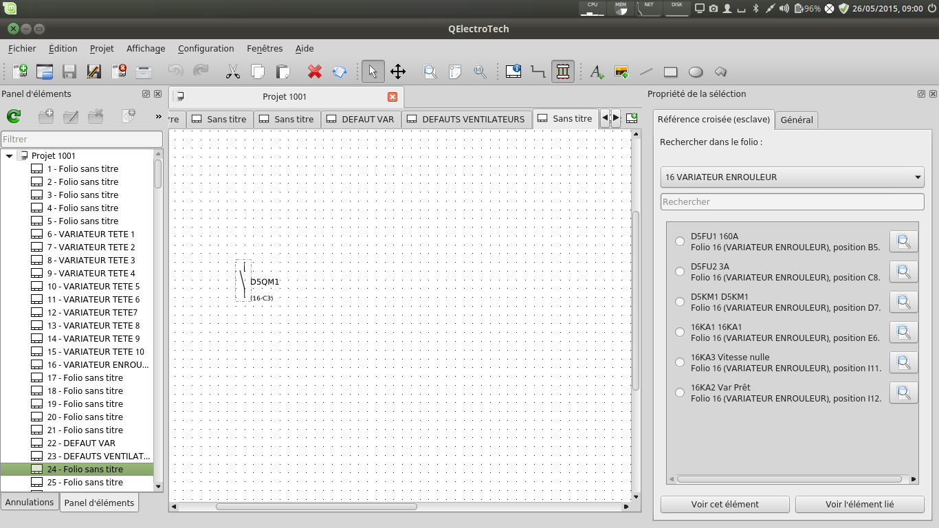 On clique sur le schéma (désélection des éléments) et le dock se fait tout petit et laisse la place au panel.
