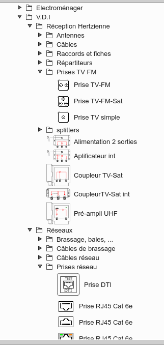 Je dessine l'installation d'une habitation et ce que je ne parviens pas à trouver: les prises pour TV et pour ordinateur (RJ45) est ce qu'elles y sont?