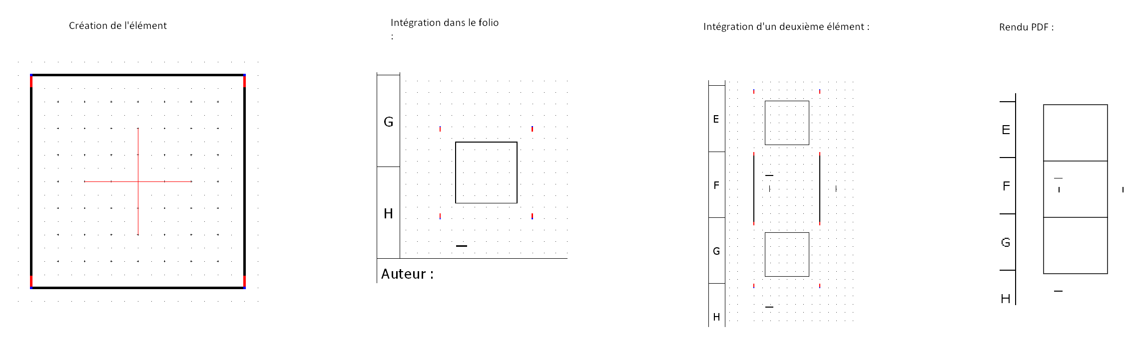 2) J'intègre cet élément dans le folio. Le positionnement du carré par rapport aux bornes n'est plus le même.