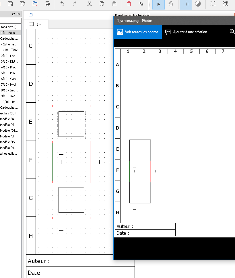 Un pc avec deux écrans de taille différente (dans mon cas un laptop 13" et un écran 24"), en mode bureau étendu. Ouvrir QET, charger le projet puis transférer QET sur l'autre écran et la magie : les éléments dans le folio changent de place au changement d'écran ! Quand on revient sur le premier écran, ils se remettent à leur place.