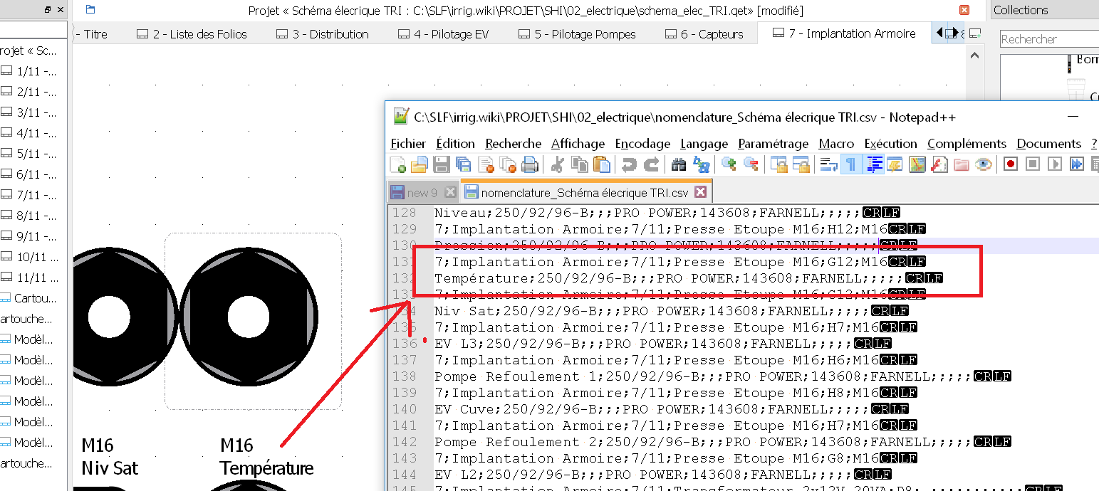 Si le label contient un saut de ligne , le fichier de nomenclature généré n'est pas exploitable : Le saut de ligne est reporté dans le fichier ce qui fait qu'il y a deux lignes pour un seul élément. Dit comme ça c'est pas très clair. En PJ une illustration du problème.