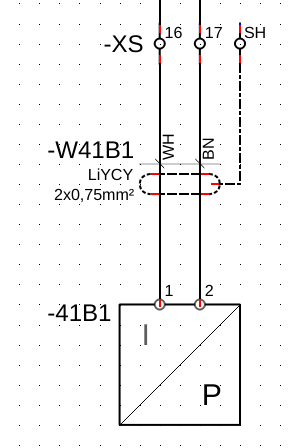 Une fois les 2 éléments mis en vis-à-vis, y'a plus qu'à mettre les conducteurs les reliant en pointillés et le tour est joué